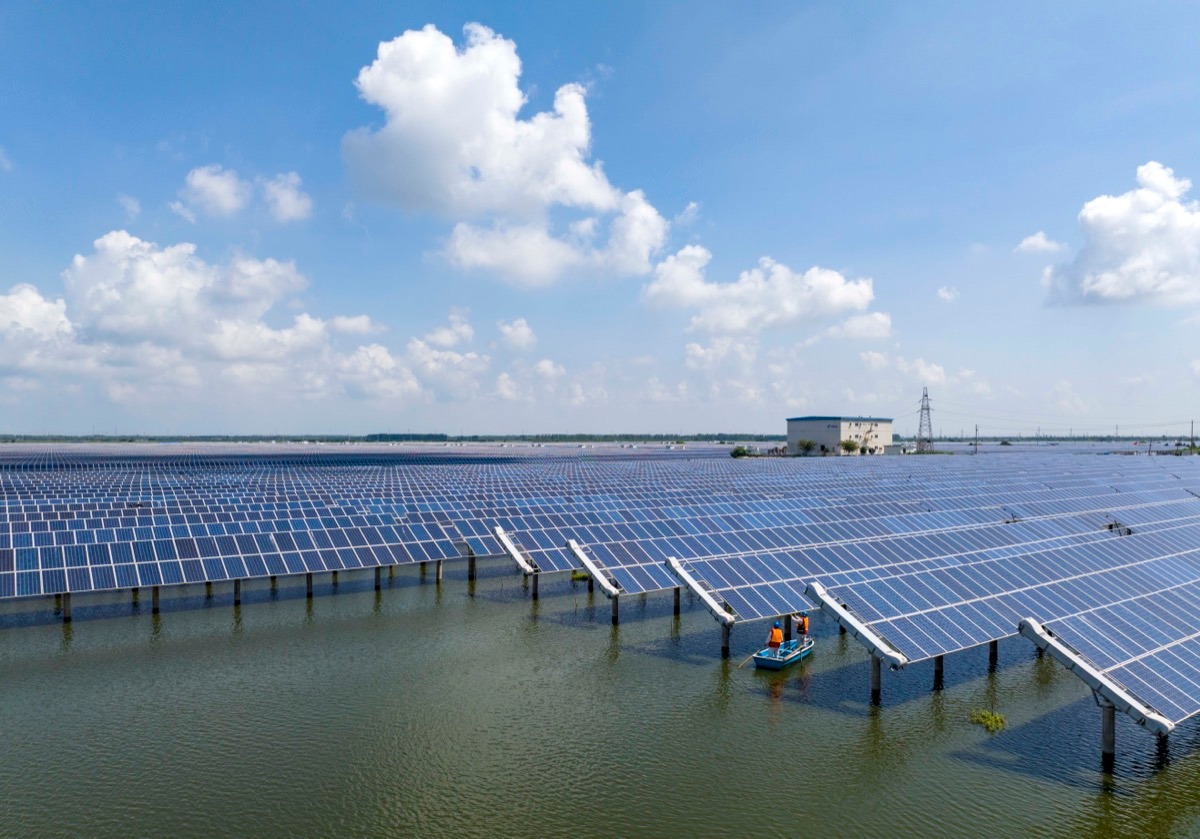 中国能源新闻网讯(汤德宏 吴均阳)8月15日是首个全国生态日,在位于江苏省兴化市千垛镇的水上光伏发电基地,一排排深蓝色的太阳能发电装置整齐排列在渔塘上,与兴化市西北部生态旅游圈的里下河国家湿地公园、千垛景区、万亩荷塘共同形成一条新的生态旅游线。