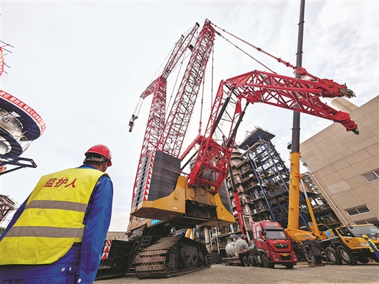 抚顺石化工建公司创新吊装工法,对1600吨吊车组车任务进行细致分解,辨识吊装作业风险,研讨技术要求,为保障吊装安全做足准备。图为6月16日,公司在大连西太平洋石化公司检修中,一次成功拆除重340吨的催化装置第一再生器锥段及旋分加汽提段。徐蕤 蔡庆宇 摄影报道