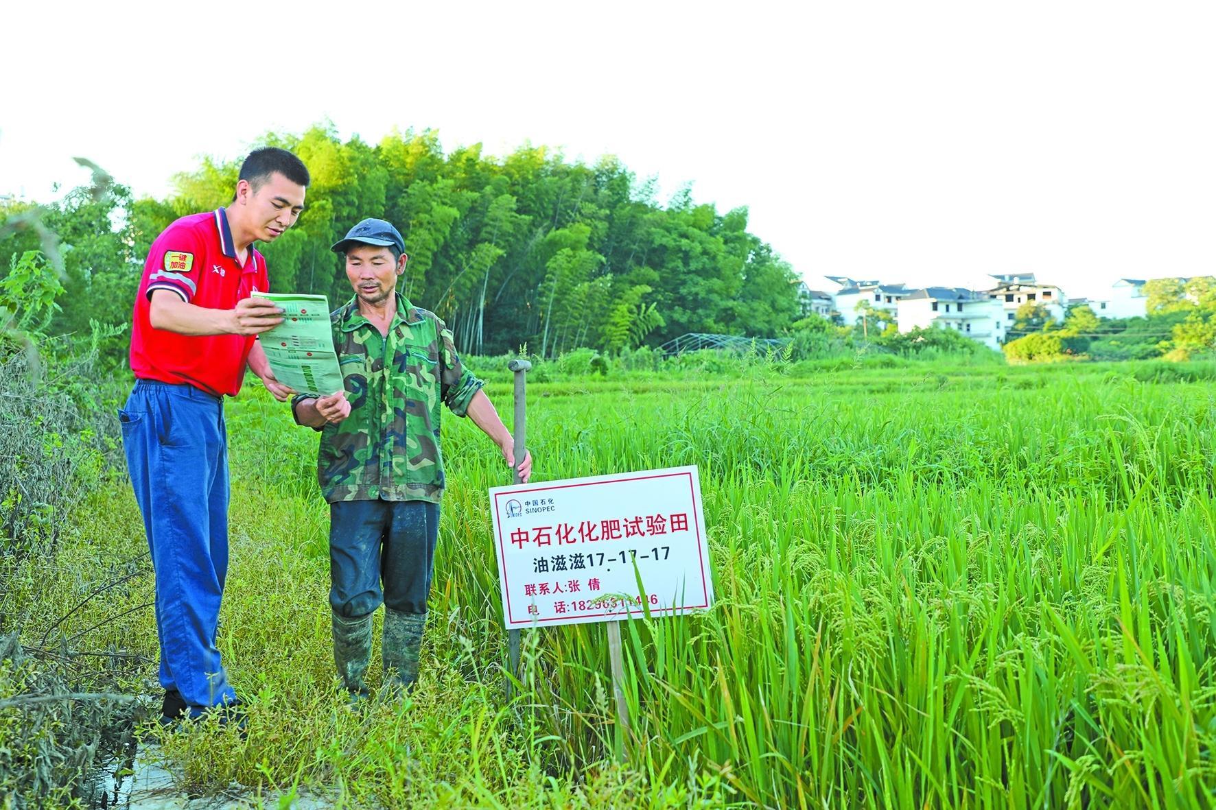 今年以来,江西石油在全省126座农业网点加能站周边打造“中石化化肥试验田”,通过“小量试销售+技术常指导+过程全跟踪”,提供送化肥到家、送技术到田及土壤监测等服务,有力助推农户增产增收,上半年化肥销售额同比增长49.83%。图为加能站员工向试验田农户讲解相关服务。廖瑜青 摄 张 曦 文