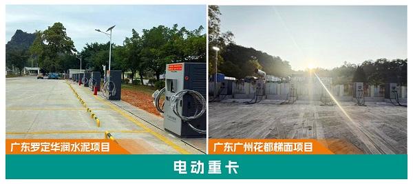 场站落地:从广东广州、湛江、云浮、罗定、阳江、茂名、汕头等区域,一路辐射至广西柳州、桂林、湖南长沙等地,充电网络覆盖公共快充、物流干线、县域乡村、电动重卡等多元场景。在公共快充领域,广东湛江金富微电网项目、茂名特来充重卡充电及配储项目及湖南安灿项目采用我司261kWh液冷储能设备及大功率分体式直流充电堆等核心产品,共同构筑起城乡协同、车桩网互融的智慧补能网。在电动重卡补能领域,广东罗定华润水泥一期项目采用“2套1250KVA变压器+8套320kW一体式双枪直流充电机”组合,为矿山重载电动化提供样板;广州花都梯面一期则引入2000KVA箱式变压器及6套320kW一体式双枪直流充电机,为新能源车辆补能做好基础设施建设。此外,“蚂蚁站”模式也在广东云浮和广西柳州落地生根,通过灵活布点解决了县域、乡镇充电难题。
