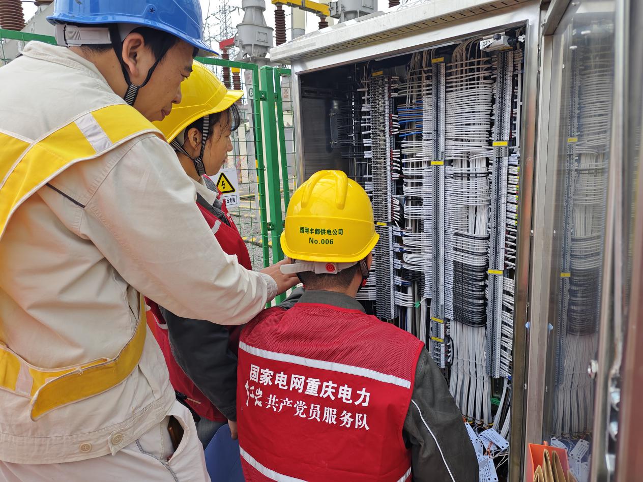 重庆丰都许明寺农光互补项目110千伏送出工程投运前期,国网丰都供电公司二次班员工在110千伏保合变电站开展110千伏许保线保护及自动化调试工作。(吴凤摄)