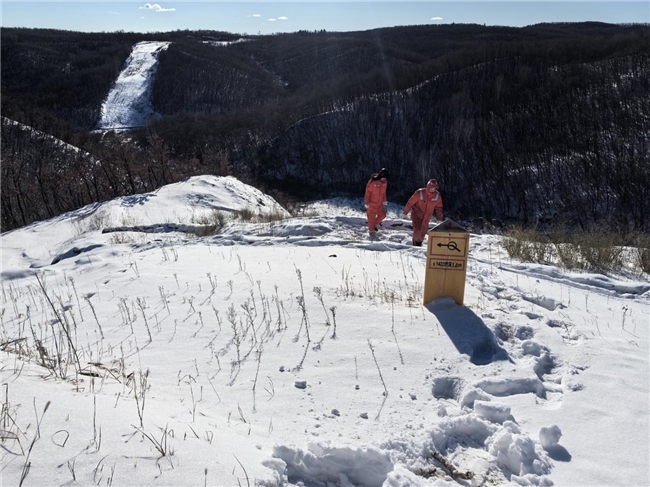 一路上,两人仔细排查出十余处地面标识损坏。他们在管线上方的小路上相互搀扶,缓慢前行。遇到印迹模糊的标志桩,王佳良便弯腰,从怀里掏出捂得温热的记号笔重新描画,赵宏图则举起望远镜,仔细检查沿途陡坡与水保情况。道路湿滑难行,近3公里的路程,他们足足走了三个多小时。
